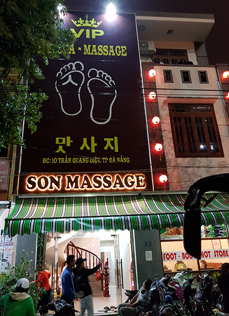 관광 첫날은 유명 관광지 대신 2시간에 40달러를 지급하는 한국인이 운영하는 마사지 샵에 들러 스톤마사지를 받으면서 관광을 시작했다고 토로했다. 당시 다낭 패키지 관광에는 총 32명의 일행이 동반했다.