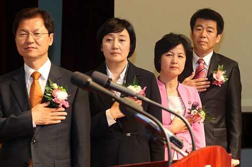 | ▲민주당의 서울시장 후보 경선이 뜨거워지고 있다. 19일 열린 합동 연설회에서 박영선, 신계륜, 천정배, 추미애 후보는 열띤 목소리로 당원들의 표심을 공략했다.ⓒ연합뉴스 |
