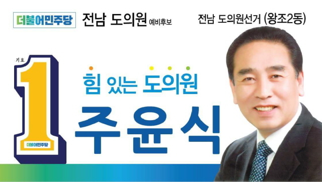 전남도의원(순천 왕조2동)에 출마하는 더불어민주당 주윤식 예비후보가 의정비 전액을 지역발전기금을 내 놓겠다고 제안해 눈길을 끌었다.