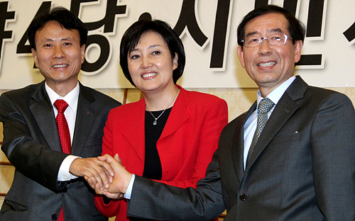 | ▲ 민주당과 민주노동당, 시민사회 진영 등 야권은 이날 오후 국회에서 단일후보 협약식을 가졌다.ⓒ연합뉴스 |