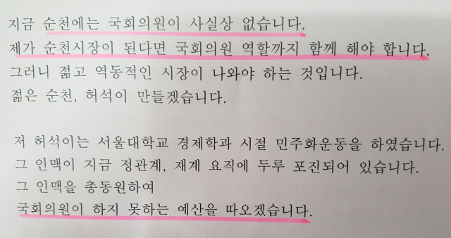 특히 무소속 이정현 의원이 막대한 예산을 확보해 순천 발전에 큰 역할을 하고 있지만, 허 예비후보는 사실상 이 의원을 무시하듯 순천에는 국회의원이 사실상 없다고 거론해 이 의원의 지지층들에게 상당한 불쾌감을 안겨준 것으로 전해졌다.