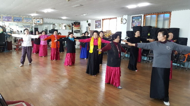 ▲여성문화회관에서 진주덧배기춤을 강습받는 시민들 모습ⓒ진주시