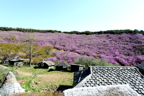 화왕산의 진달래 군락지는 서쪽과 북쪽 사면의 절벽을 따라 군락을 이루어 허준 드라마 세트장과 정상 능선, 산성 동문, 관룡산 능선을 따라 쭉 이어진 진달래의 장관이 펼쳐져 있다.