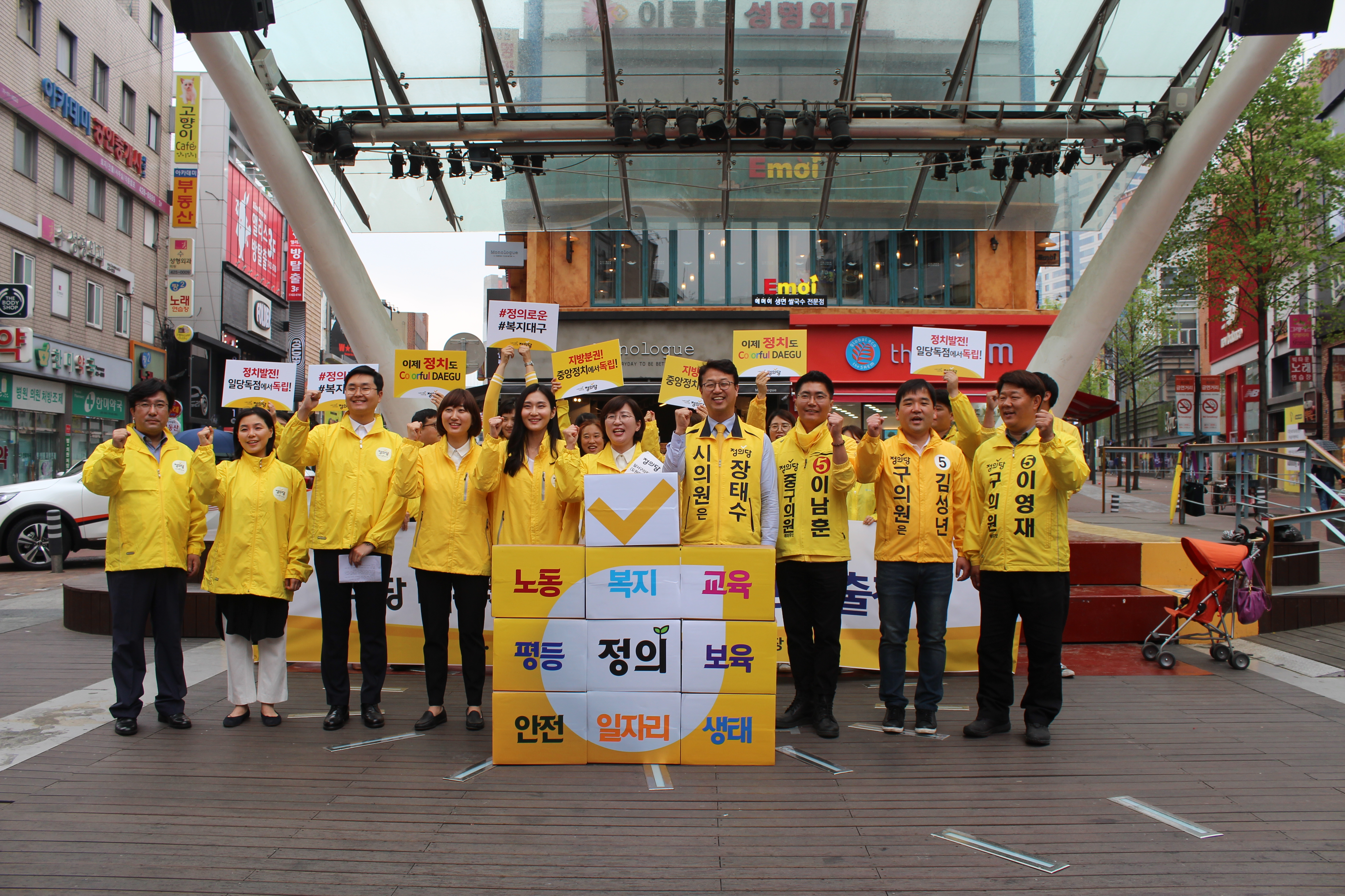 정의당 대구시당이 22일 동성로에서 지방선거 출정식을 갖고 공식 선거운동에 들어갔다.