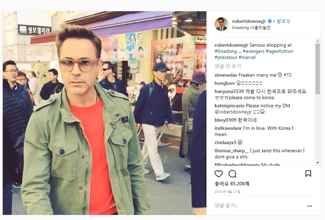 마블 영화가 개봉할 때마다 주요 히어로를 연기한 배우들이 내한하여 국내 팬들의 환대에 감동하고, 자국 매체에서 한국에서의 경험을 이야기한 것이 다시 국내 팬들에게 소개되기도 했습니다. <아이언맨>(2008), <아이언맨3>(2013), <어벤져스: 에이지 오브 울트론>(2015)의 개봉에 맞춰 세 번이나 내한했던 로버트 다우니 주니어는 국내 언론과의 인터뷰에서 <아이언맨>의 국제적인 흥행을 한국 흥행을 통해 확신할 수 있었다고 말하기도 했습니다. (링크)