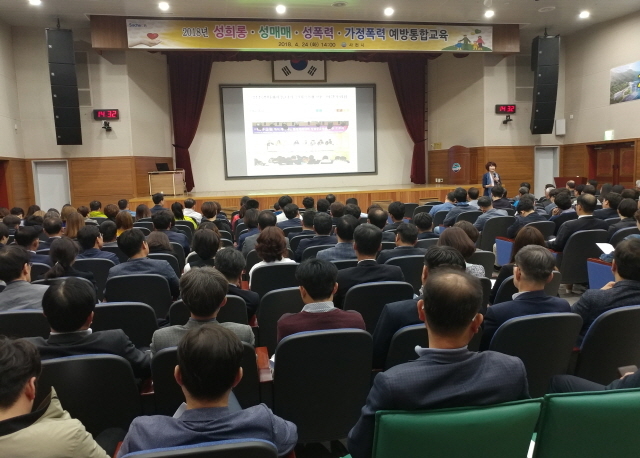 경남 사천시는 지난 24일 시청 대강당에서 소속 공무원 500여명을 대상으로 ‘2018년 상반기 공공기관 4대폭력예방 통합교육’을 실시했다.
