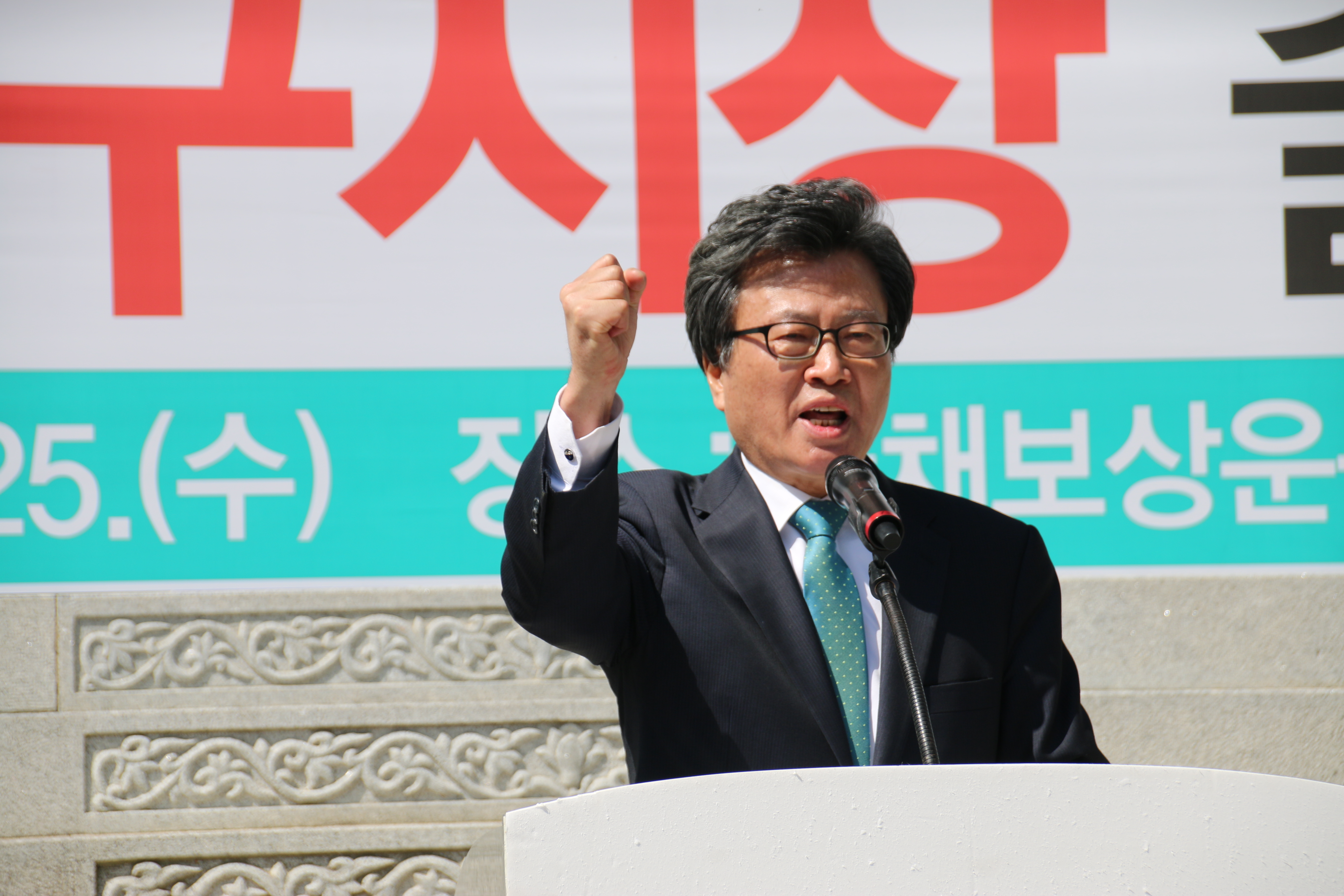 김형기 새로운 대구를 열자는 사람들 대표(경북대 교수)가 25일 대구 국채보상운동기념공원에서 바른미래당 대구시장 후보 출마선언을 했다.
