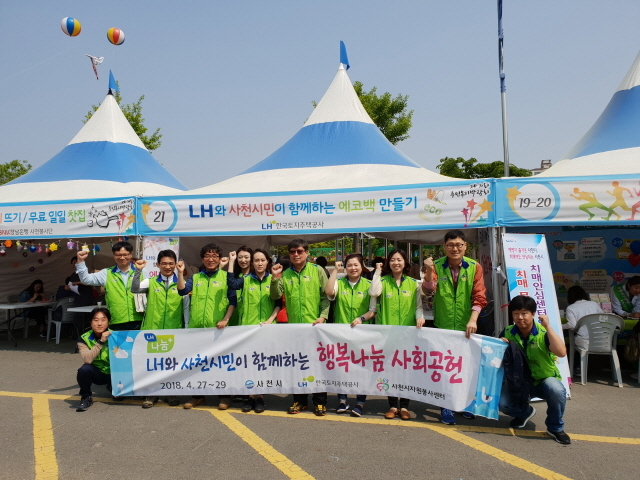 LH(한국토지주택공사)는 지난 4월 27일부터 29일, 3일간 사천시청 노을광장에서 개최된 제10회 주민복지박람회에서 관람객을 대상으로 ‘사천시민과 함께하는 에코백 만들기’ 체험부스를 운영했다.