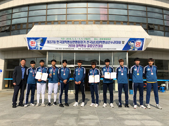 대전대는 강연승(22)·김동주(22)·이수환(21)·김성호(20) 선수가 한 팀을 이룬 사브르 단체전에서 한국체대를 45대 30으로 물리치며 우승을 차지했다. 또 신현석(22)·문병욱(21)·이종성(20)·강홍철(20)이 참가한 에뻬 단체전에서는 아쉬운 3위를 차지했다.