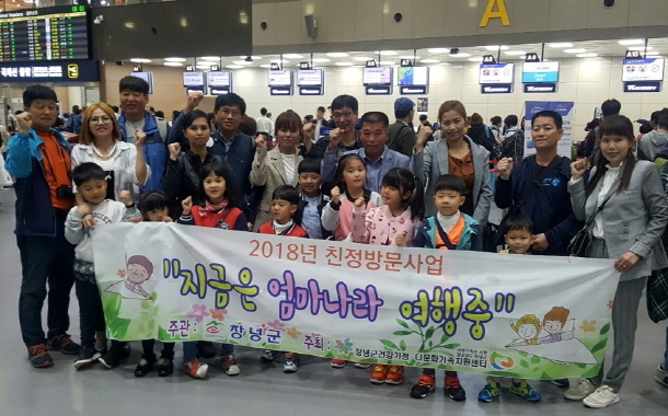 다문화가정 친정방문은 3년 이상 정착해 살면서 경제적 사정 등으로 오랫동안 친정을 방문하지 못하고 있는 여성결혼이민자와 그 가족을 대상으로 창녕군이 지원하고 있다.