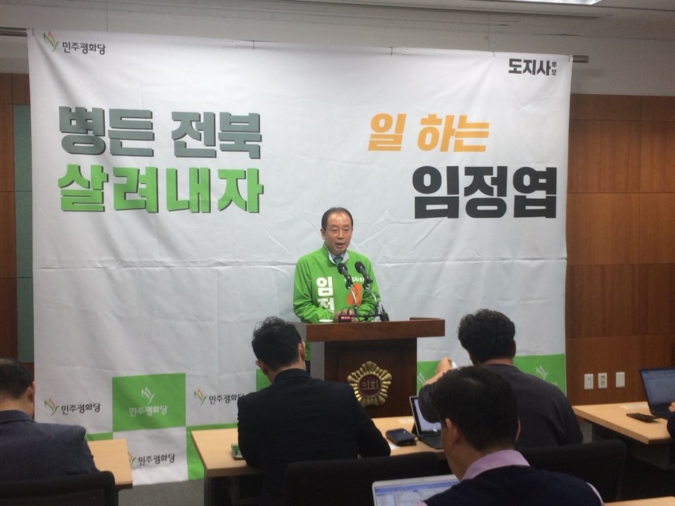 임정엽 예비후보는 10일 전북도의회 브리핑룸에서 기자회견을 열고 “조만간 정부와 한국지엠 간 협상이 마무리 된다. 정부 최종안이 당장 공개될지 모르겠으나 잘못하면 군산공장에 대한 지원은 빠질지 모른다”고 우려했다.