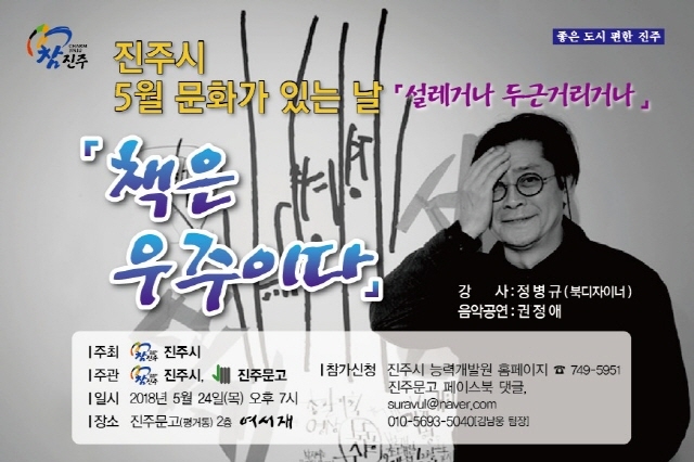 경남 진주시의 5월 문화가 있는 날 행사인 ‘설레거나 두근거리거나’가 오는 24일오후 7시 진주문고 여서재에서 올해 두 번째 설렘으로 찾아온다.