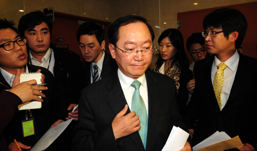 | ▲ "사실이면 의원직 사퇴하겠다"고 말한 최 의원이 국회 기자실을 나서며 질문 공세를 받고 있다 ⓒ뉴시스 |