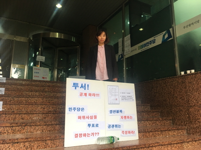 이같은 결정에 반발한 이나견 후보는 18일부터 민주당 부산시당사 앞에서 노숙농성을 시작하고 공천 무효에 대해 해명을 요구했다.