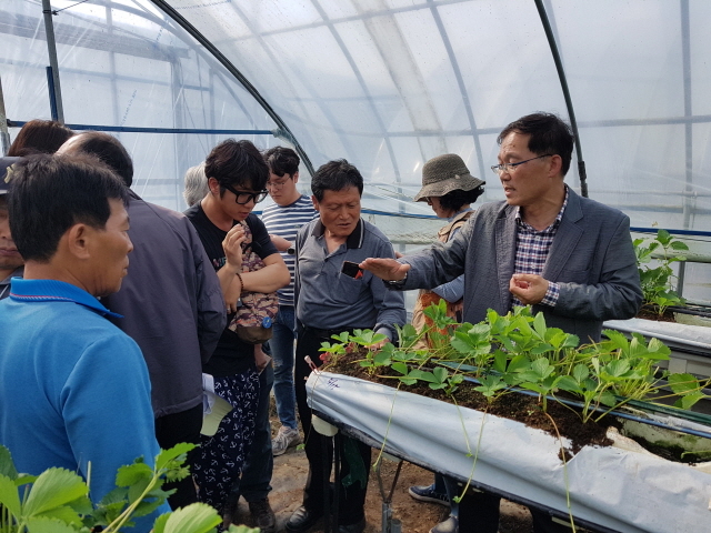 또한 이날 진주시 농업인대학생과 전국 시설딸기 재배농가 250여명이 한자리에 모여 딸기적정공부방 밴드운영자이기도 한 황종헌 강사의 시설딸기 수경육묘기술에 대한 교육도 진행됐다.