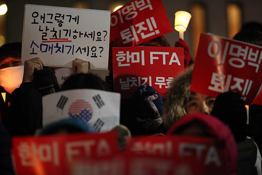 정동영, 조배숙 최고위원과 유선호, 김진애, 김희철 의원 등은 이날 국회 정론관에서 기자회견을 갖고 "예산안을 포함해 숱한 민생법안들이 산적해 있음을 우리 모두 알고 있지만 한미 FTA 통과는 대한민국 헌법체계를 뒤흔드는 국란이며 국회의 입법권한을 근본적으로 부정할 수 있는 독 중의 독"이라며 "지금 민주당이 가야할 곳은 국회가 아니라 광장"이라고 주장했다.