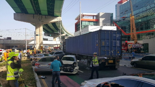 경찰 관계자는 "내리막길을 내려오던 트레일러 차량이 속도를 줄이지 못하고 신호대기 중인 차량들을 추돌한 것으로 정확한 사고 원인은 조사 중이다"고 밝혔다.