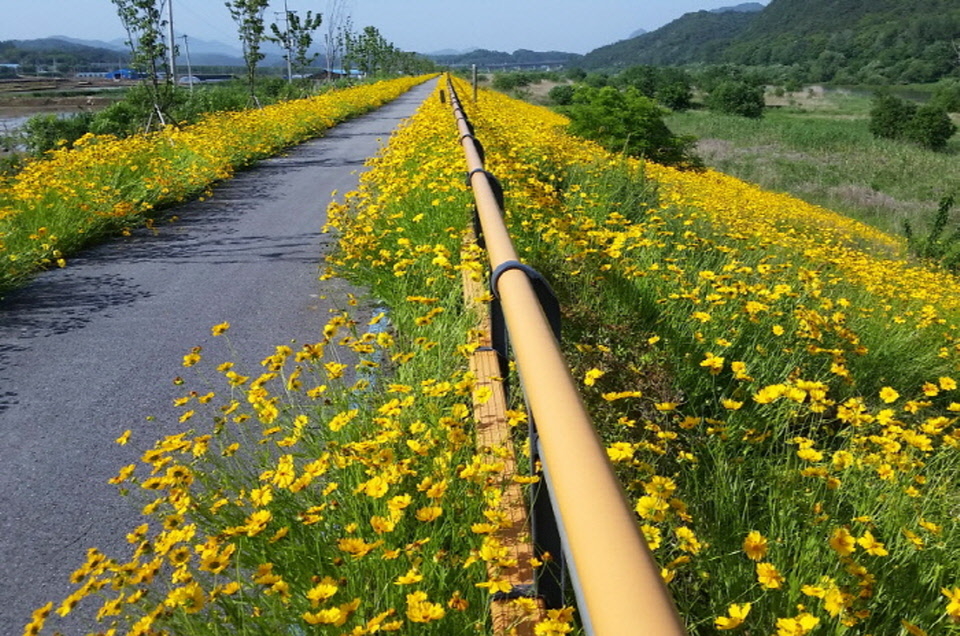 5~6월에 피어나는 금계국은 다년생으로 수세가 좋아 매년 관광객에게 금계국의 꽃말처럼 '상쾌한 기분'을 선사하고 있다.