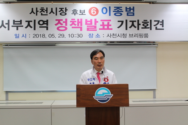 무소속 사천시장 이종범 후보는 29일 사천시청 브리핑룸에서 기자회견을 열고 서부 3개면 지역 공약을 발표했다.