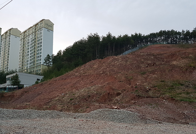 ▲태백시 강원관광대학교 인근 급경사지. ⓒ프레시안