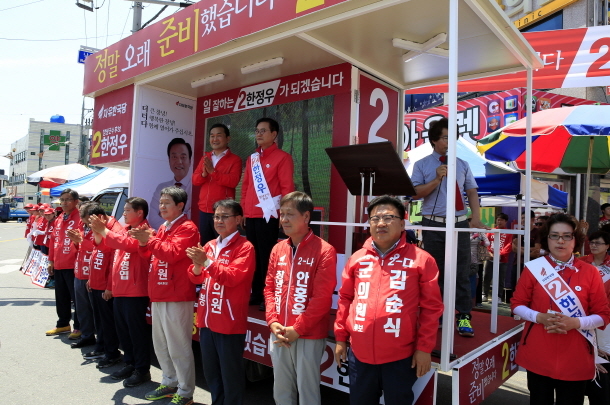엄 의원은 "한 후보 얼굴을 보면 살아온 연륜이 표현 된다. 약속한 일들 한정우 후보는 한결 같다. 이런분을 군수로 뽑아주면 저와 손발을 맞추어 군정을 잘 이끌어 나갈 것이다"고 강조했다.