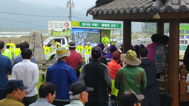 한우상 후보는 이날 오전 의령병원에서 세미유세를 잠깐 펼친 후 낙서면과 봉수면을 찾았다.