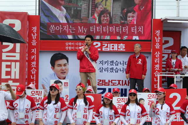 [포토]사천읍시장 찾은 김태호 경남지사 후보