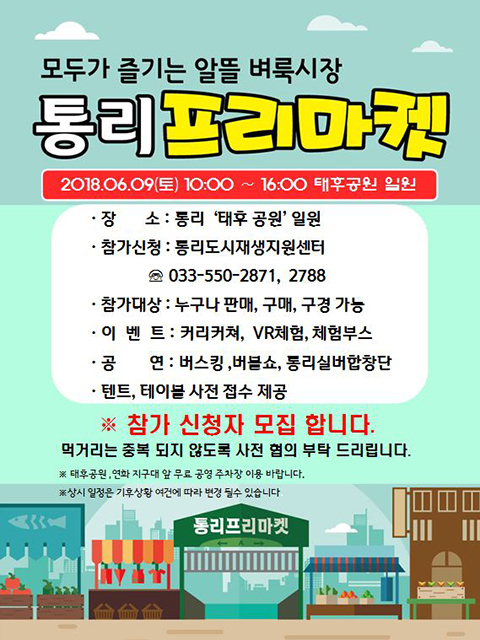 누구나 판매·구매·구경이 가능한 통리 프리마켓에서는 캐리커쳐와 VR(가상현실)체험 등 무료체험 이벤트도 열릴 예정이다.