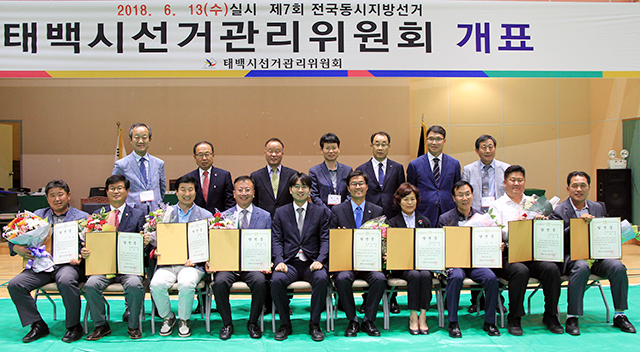 ▲14일 태백시 기초자치단체장, 광역의원, 기초의원 당선자 당선증 교부식. ⓒ프레시안