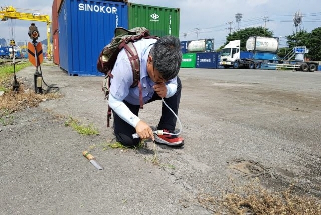 지난 18일 야적장 바닥 틈새에서 20여 마리의 일개미가 발견된 평택항 컨테이너 터미널에서도 추가 조사결과 야적장 바닥 시멘트 균열 부위를 따라 20m 간격을 두고 총 3개 지점에서 애벌레를 포함해 일개미 700여 마리가 발견됐다.