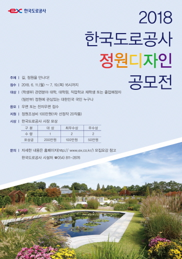 국민들의 아이디어를 바탕으로 정원문화를 확산하고 고속도로 환경을 개선하기 위한 것으로, 공모주제는 '길, 정원을 만나다!'로 학생부와 일반부로 나눠 진행한다.