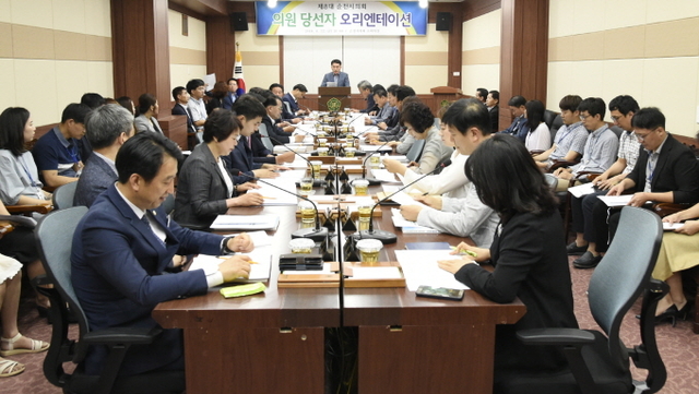 순천시 의회사무국(박상순 사무국장)은 22일 의회 소회의실에서 6·13 지방선거 순천시의원 당선자 24명을 대상으로 ‘제8대 순천시의회 의원 당선자 오리엔테이션’을 개최했다.