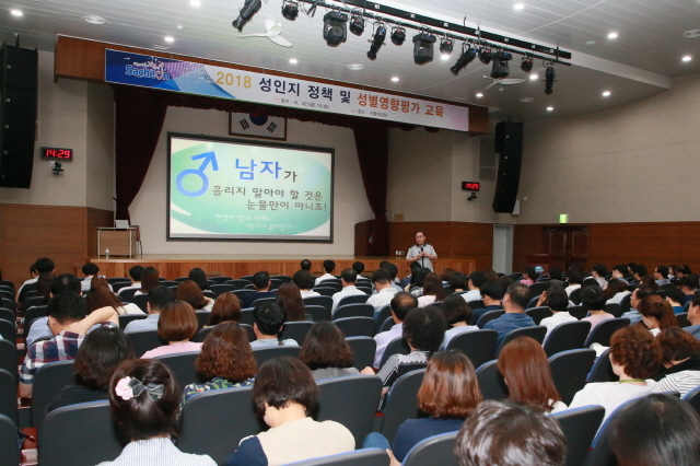 경남 사천시 지난 22일 오후 2시 공무원 300여 명을 대상으로 '2018년도 성인지 정책 및 성별영향평가 교육'을 실시했다.