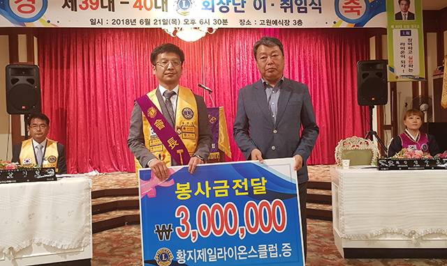 강원 태백시 황지제일라이온스클럽은 최근 39대-40대 회장단 이·취임식(이임 양기현, 취임 정주호)에서 드림스타트 및 지역 내 장애인단체와 지역아동센터에 후원 사업을 전개해 훈훈한 미담이 되고 있다.
