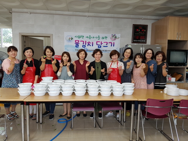 지역사회보장협의체 위원들은 평소 여름에도 계절 김치가 필요한 어려운 이웃들을 생각하며 재료 손질부터 김치 담그기까지 정성을 들여 열무 물김치와 함께 돼지양념불고기를 만들어 독거노인, 한부모, 장애인 등 저소득가정 120세대에 전달했다.
