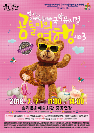 '곰돌이의 여행'은 오래 진열만 되다 결국 폐기 처분 당하게 된 곰돌이의 탈출기를 그린 어린이 국악뮤지컬이다.