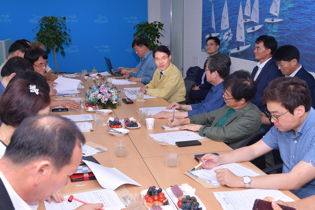 ▲2일 오후 권오봉 여수시장이 시청 브리핑룸에서 지역 언론인들과 차담회를 하며 민선7기 여수시에 바라는 사항을 경청하고 있다. ⓒ여수시 제공