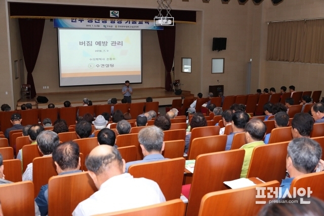 이날 수 컨설팅 대표 손동수 수의학박사를 강사로 초빙해 소 버짐 예방과 치료 방법, 가축전염병의 이해와 예방 등의 교육을 진행했다.