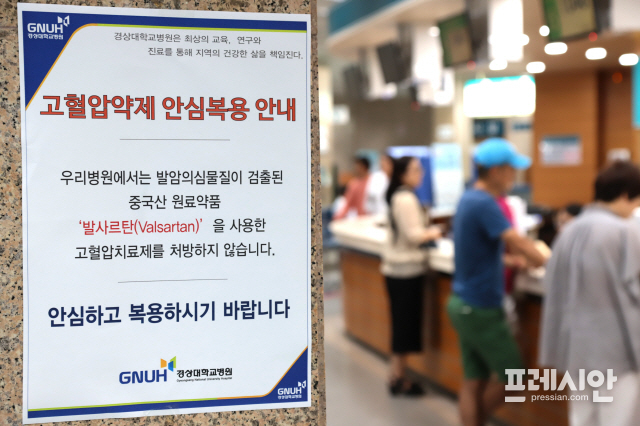 경상대학교병원은 최근 식품의약품안전처(이하 식약처)에서 발표한 중국산 발사르탄 성분이 포함된 고혈얍약제를 사용하지 않는다고 12일 밝혔다.