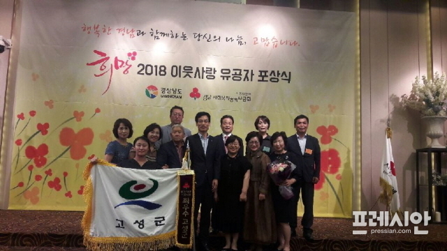 경남 고성군은 12일 창원 호텔인터내셔널에서 경상남도와 경남사회복지공동모금회가 주최한 ‘희망 2018 이웃사랑 유공자 포상식’에서 최우수 기관상을 수상했다.