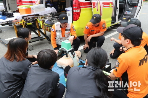 [포토뉴스] 창원소방서, 신규공무원 및 응급구조학과 학생 구급현장 실습