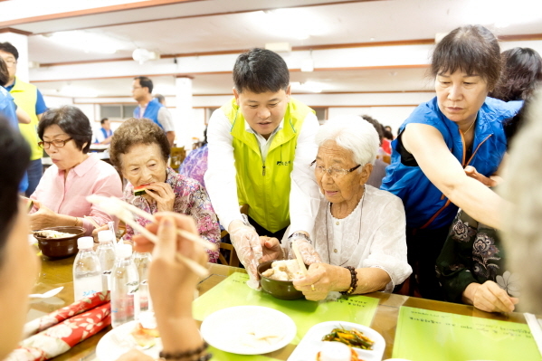 전북은행 최강성 노조위원장을 비롯한 노동조합 간부 전원과 푸드 봉사단 등 50여명은 정성껏 준비한 삼계탕과 과일, 떡 등을 200여 어르신들께 전달했다.