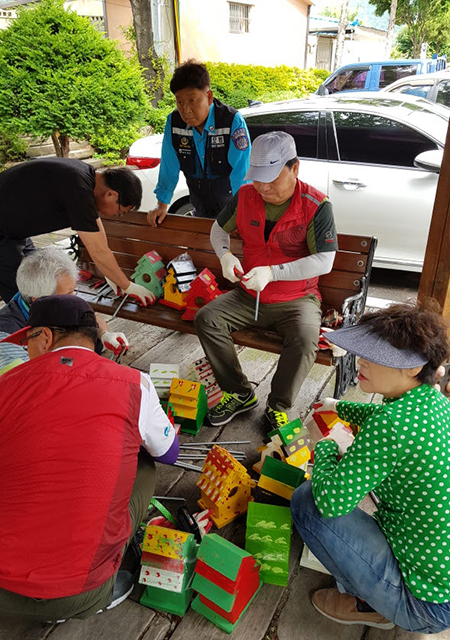 이번 새집 달아주기 행사 사업비는 황연동주민자치위원회 기금 100만 원을 들여 주민자치위원, 황연동 직원들과 함께 새집 만들기와 색칠하기, 달아주기까지 한 달여 동안 구슬땀을 흘리며 휴거리 조성에 앞장섰다.