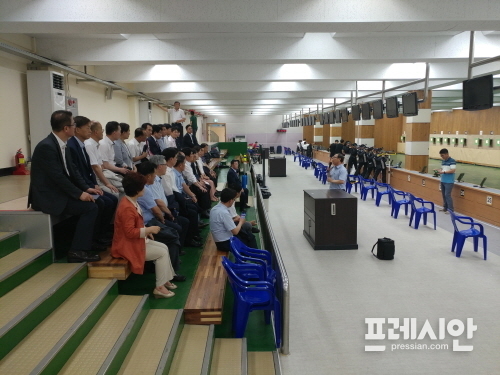 ▲창원시의회는 17일 창원국제사격장을 방문해 2018 창원세계사격선수권대회 준비상황에 대한 보고를 받고 있다. ⓒ창원시