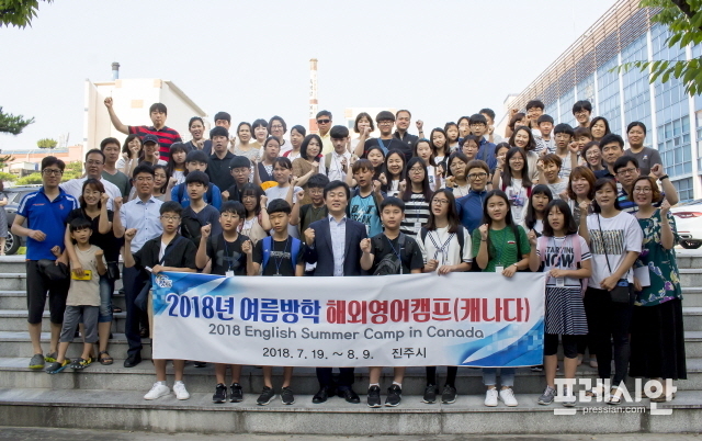 경남 진주시 진주아카데미는 19일 청소년수련관 광장에서 참가학생 30명과 학부모 등 60여명이 참석한 가운데 진주아카데미 여름방학 해외영어캠프 캐나다 환송식을 가졌다.