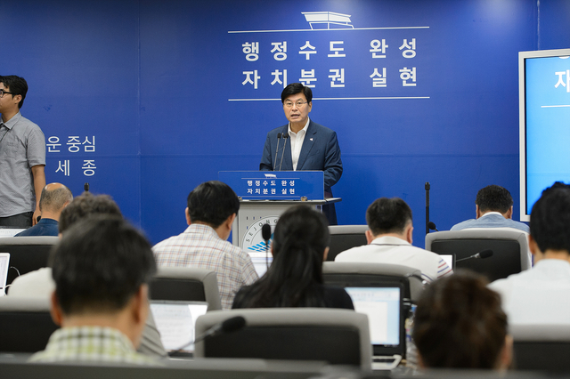 이춘희 세종시장이 19일 가진 정례브리핑에서 SB플라자에 대해 설명하고 있다