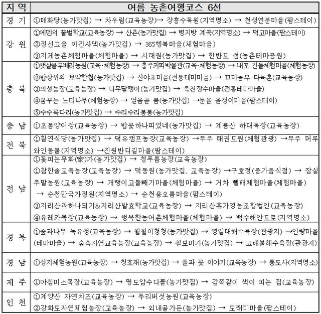 농촌진흥청이 24일 여름방학을 맞은 자녀와 함께 가기 좋은 농촌여행지를 소개했다.