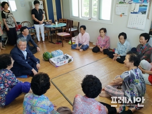 무더위 쉼터로 지정된 개발등 경로당에서는 냉방기 정상가동 여부 등을 확인하고 불볕더위를 피해 쉼터에 모인 어르신들을 만나 폭염대비 국민행동요령을 설명 드리면서, 응급 구급약 세트와 시원한 생수도 전달했다.