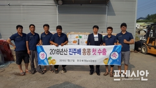 경남 진주시는 올해 생산한 햇배(장수) 1.4톤을 홍콩으로 첫 수출 했다고 30일 밝혔다.