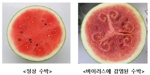 최근 일부 소비자 가운데 반으로 자른 수박의 과육에 나타나는 하트 모양 줄무늬를 바이러스로 잘못 아는 경우도 있다.